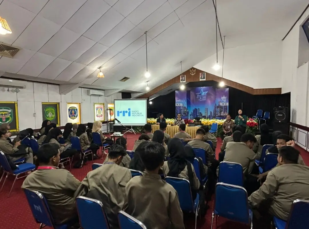 Puluhan anggota Pramuka Kalimantan Timur belajar langsung proses produksi berita radio di RRI Samarinda, sebagai bagian dari Pelatihan Jurnalistik Pramuka Kaltim 2025.
