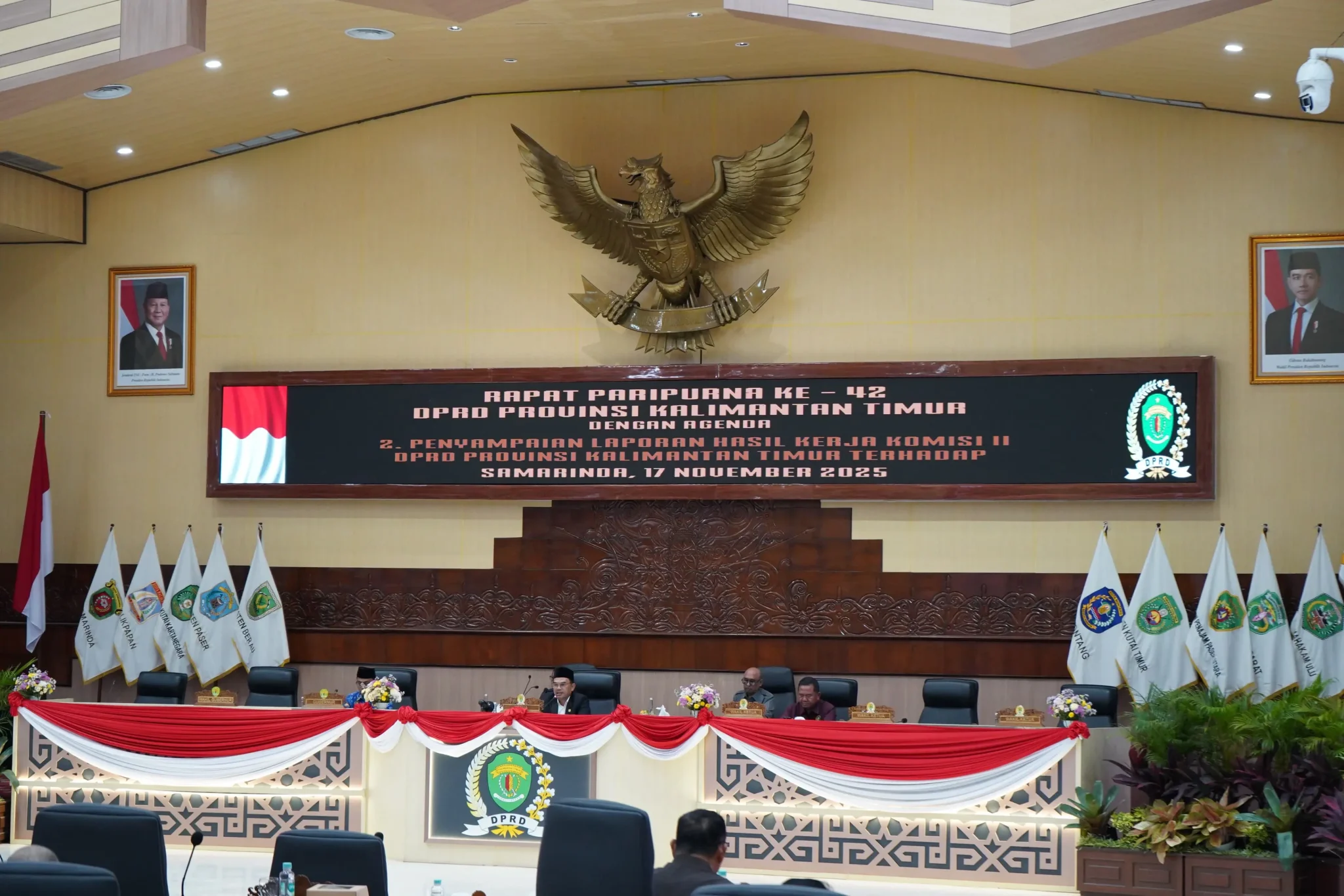 DPRD Provinsi Kalimantan Timur melaksanakan Rapat Paripurna ke-42 Masa Sidang III Tahun 2025 yang memuat sejumlah agenda utama, termasuk pengesahan revisi kegiatan masa sidang serta penyampaian laporan hasil kerja Komisi II terkait pembahasan dua Ranperda inisiatif Pemerintah Provinsi Kaltim.
