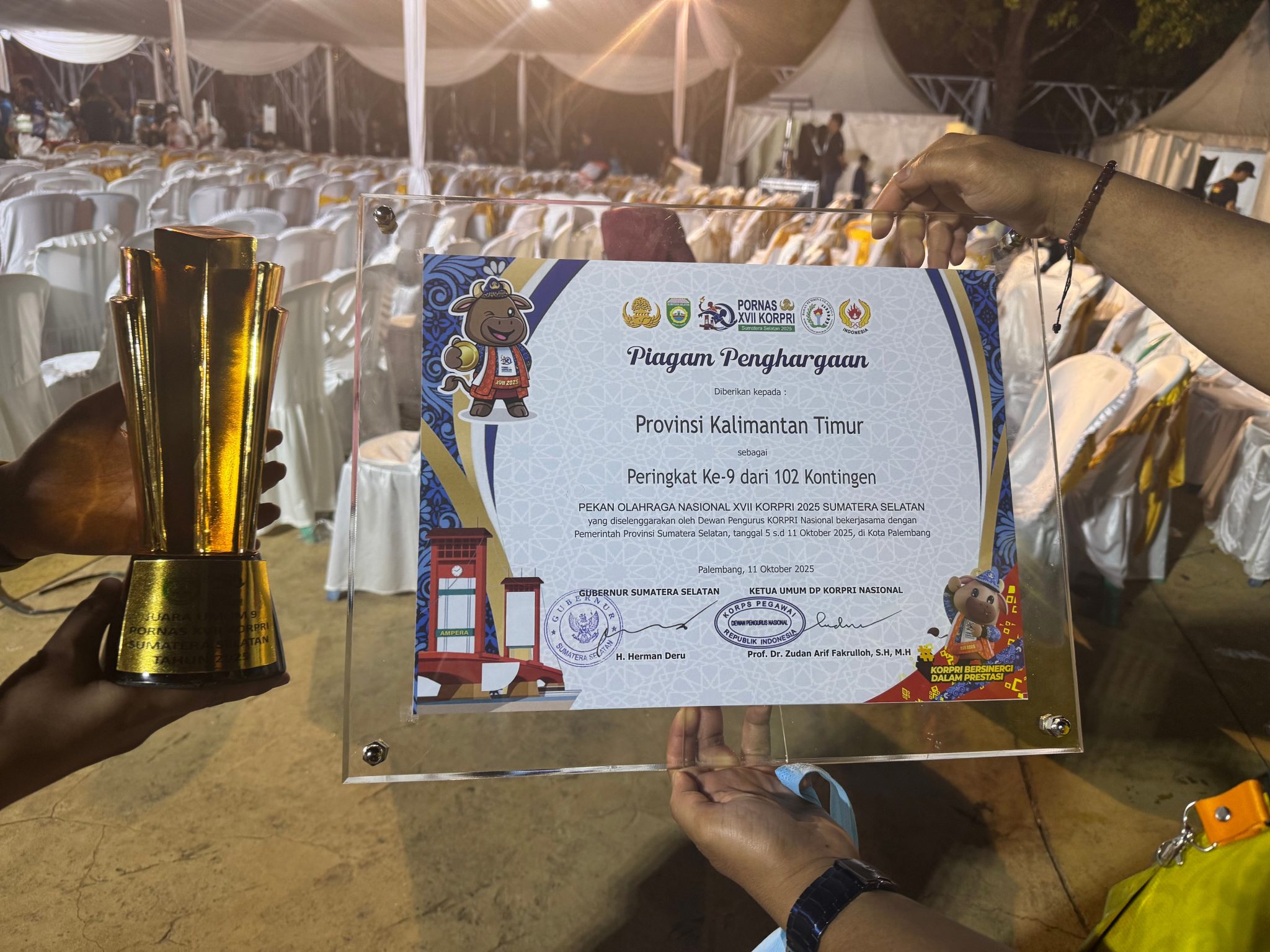 Kontingen Kalimantan Timur menorehkan prestasi gemilang pada ajang Pornas Korpri XVII Tahun 2025 di Palembang. Kaltim sukses menempati posisi ke-9 nasional sekaligus menjadi kontingen terbaik dari Pulau Kalimantan.