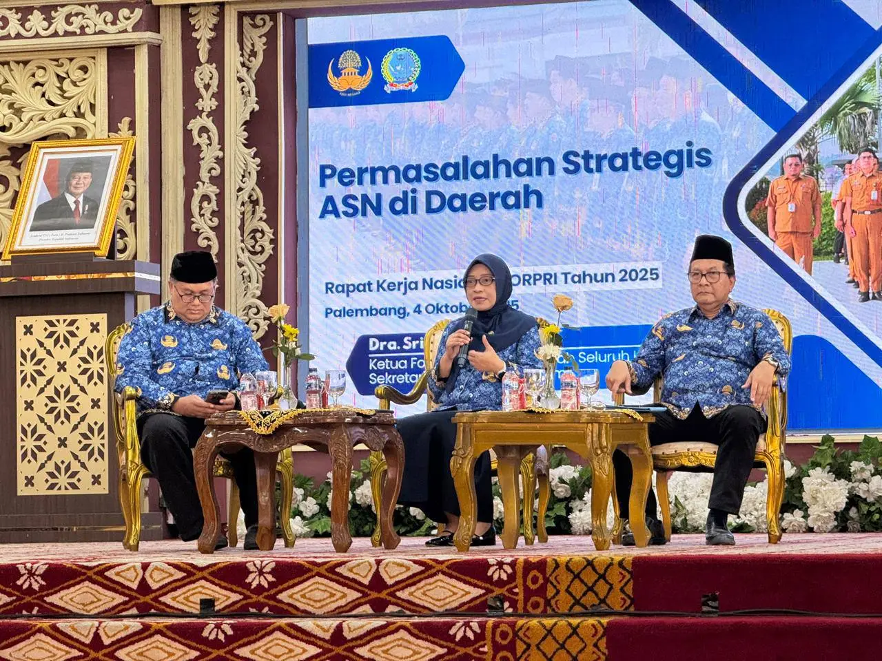 Sri Wahyuni, hadir sebagai narasumber dalam Rapat Kerja Nasional (Rakernas) Korps Pegawai Republik Indonesia (Korpri) 2025 yang digelar di Griya Agung, Palembang, Sabtu (4/10/2025).