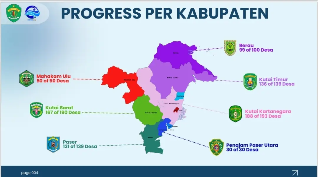 Kepala Diskominfo Kaltim, Muhammad Faisal, memaparkan data per Desember 2025 yang menunjukkan progres signifikan. Dari total 841 desa di seluruh Kaltim, sebanyak 802 desa telah terpasang fasilitas internet. Khusus untuk Kabupaten Mahulu, cakupannya sudah mencapai 100 persen.