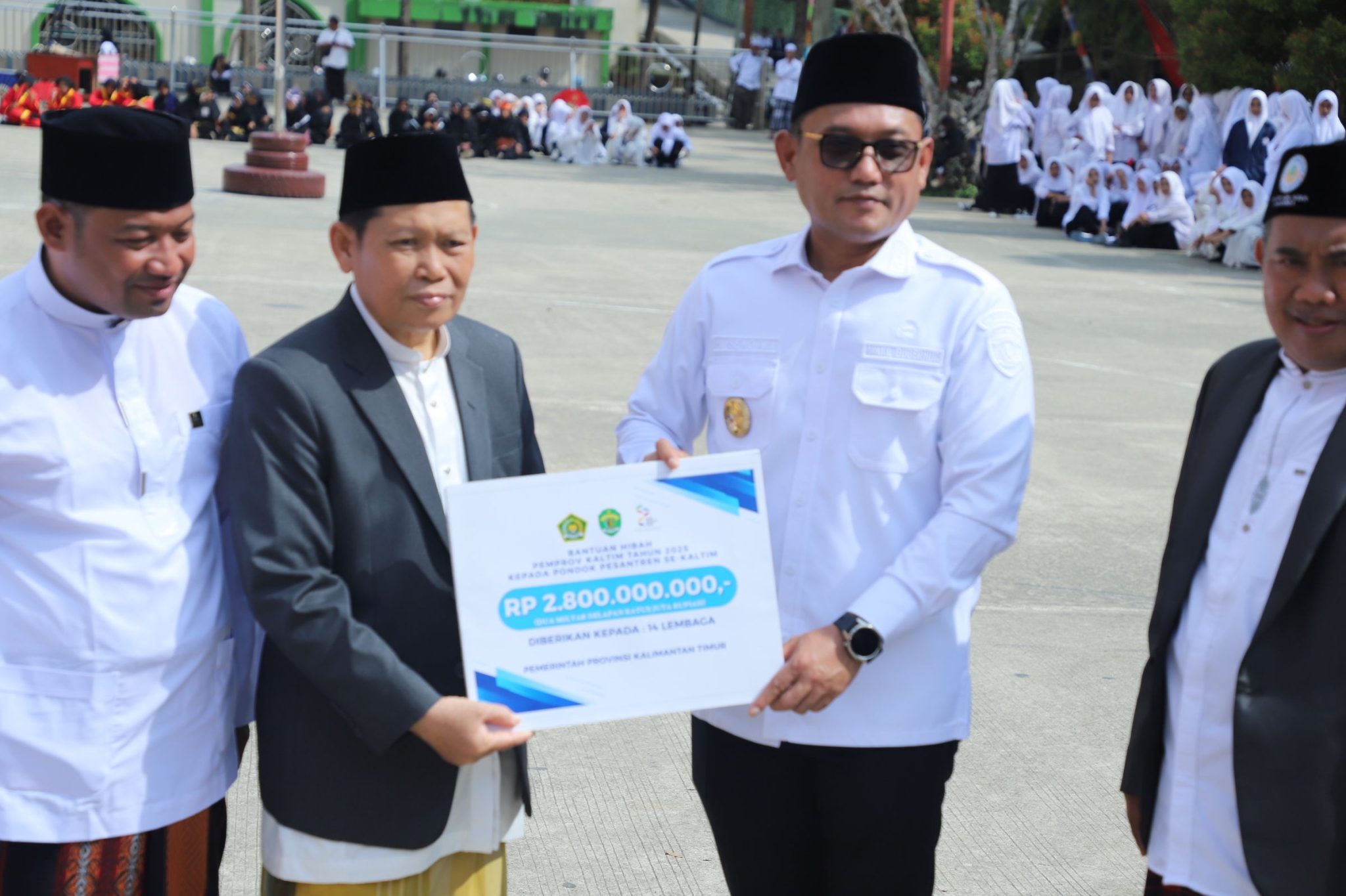 Wagub Seno Aji menyerahkan secara simbolis hibah Rp 2,8 miliar kepada Kemenag Kaltim untuk 14 pondok pesantren di Kaltim. (Ist)