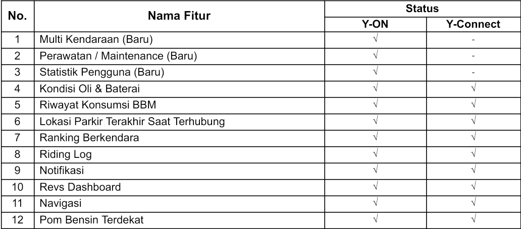 Salah satu fitur baru yang tersedia pada Y-ON adalah Multi Kendaraan yang membuat pengguna bisa mendaftarkan lebih dari 1 motor pada aplikasi. Selain itu melakukan peralihan ke sepeda motor lain kini juga bisa dilakukan tanpa harus pairing ulang terlebih dahulu sehingga lebih mudah dan praktis.